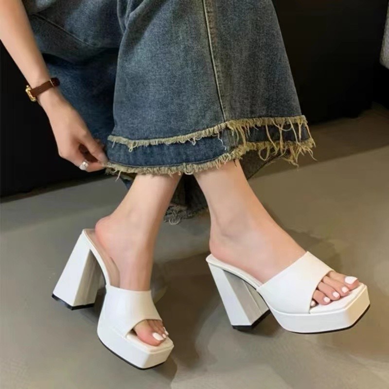 النساء الفاخرة الصنادل عالية الكعب الجلد السويدي المطاط الخارجي الأقدام الخرافية