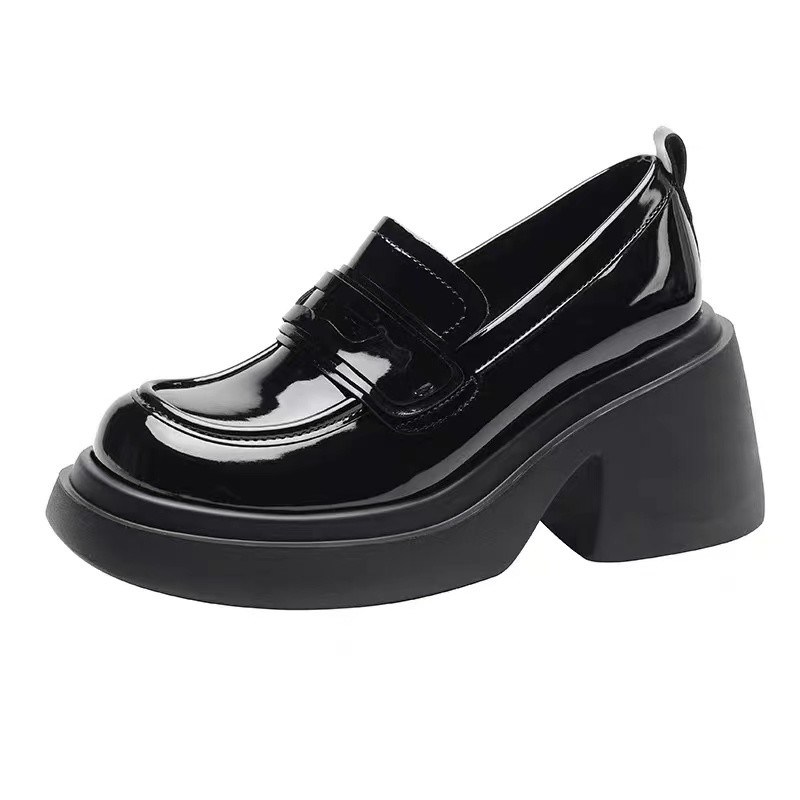الأزياء الأحذية السوداء المسطحة ذات الكعب العالي 4 سم